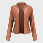 La chaqueta Romina está confeccionada en cuero premium de origen artesano, donde cada costura refleja dedicación, precisión y un acabado refinado que resiste el paso del tiempo. Su silueta favorecedora y su corte minimalista la convierten en una pieza versátil, perfecta para elevar tanto looks casuales como atuendos más pulidos — siempre con un toque de elegancia atemporal.
