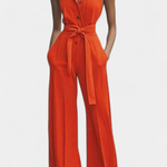 Ariella Mono Casual de Pierna Ancha con Solapa y Cintura Alta