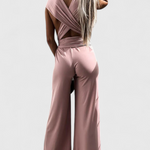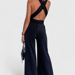 Minimalista y sensual, este mono es una declaración de estilo audaz con su espalda descubierta y elegante cruce de tirantes. Su silueta amplia y fluida alarga la figura y aporta comodidad sin esfuerzo en cada movimiento.