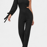 Con un estilo audaz y sofisticado, el mono Sahar combina una silueta asimétrica con detalles modernos que realzan tu figura. Su diseño de un solo hombro, la abertura lateral y la manga con lazo crean un equilibrio perfecto entre estructura y sensualidad, ideal para una noche especial o un evento elegante.
