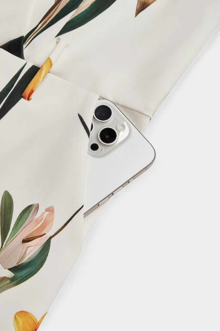 Ligereza veraniega con una silueta que combina frescura y elegancia. El mono Slara destaca por su escote en V profundo y estampado blanco limpio, ideal para días soleados con estilo relajado. Su corte suelto y tejido fluido permiten moverse con libertad, mientras el cinturón define la figura con discreta sofisticación.