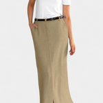 Amani Falda Larga de Cintura Alta con Abertura Frontal y Corte Recto