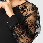 Sofisticación ligera para destacar con elegancia en cualquier momento. El vestido Bellezza está confeccionado en un delicado encaje que realza la figura con naturalidad. Su corte cómodo, escote redondo y mangas largas con aberturas sutiles lo convierten en una pieza refinada y versátil para el día o la noche.