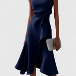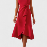 Claudia Vestido Midi Asimétrico con Drapeado Elegante