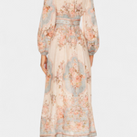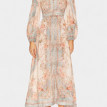 Dorotila Vestido Maxi Acampanado con Estampado Floral, Botones y Mangas Globo