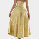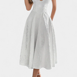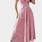 Gilda Vestido Midi Jacquard con Espalda Abierta y Cintura Alta
