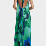 Giselle Vestido Largo Plisado con Escote Halter y Movimiento Elegante