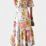 Romántico y con un aire retro encantador, el vestido Kacey mezcla elegancia relajada con volumen femenino. Su escote cuadrado, mangas abullonadas y falda en capas crean una silueta fluida que acompaña cada movimiento con gracia. El estampado floral añade un toque dulce y atemporal.