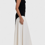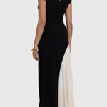 Elegancia monocromática con carácter contemporáneo. El vestido Mallory combina el contraste atemporal del blanco y negro con una silueta estilizada que define la figura con sobriedad y estilo. Una elección refinada para elevar tu look diario con facilidad.