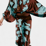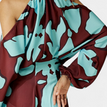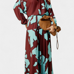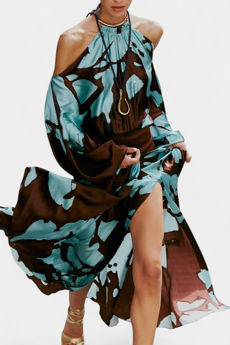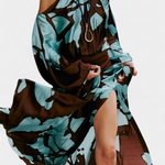 Monte Vestido Largo con Aberturas en Mangas y Estampado Abstracto