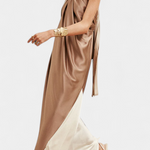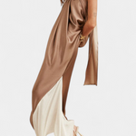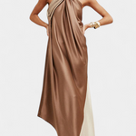 Rebecca Vestido Maxi Irregular de Color Bloque con Espalda Descubierta
