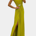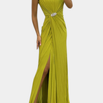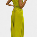 Shiloh Vestido Maxi Plisado con Abertura Lateral y Escote Cruzado