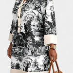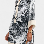 El vestido Wilma fusiona arte y moda con un estilo relajado y sofisticado. Su estampado tipo toile de Jouy en escala de grises aporta un aire clásico, mientras que la silueta suelta y los detalles en contraste elevan su carácter contemporáneo. Ideal para paseos costeros o escapadas de verano con encanto natural.