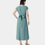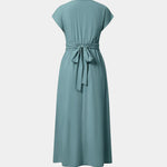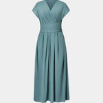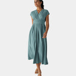 El favorecedor escote en V y la cintura alta crean una silueta femenina, mientras que el tejido suave se mueve con ligereza — perfecto para los días de verano o una ocasión elegante.
