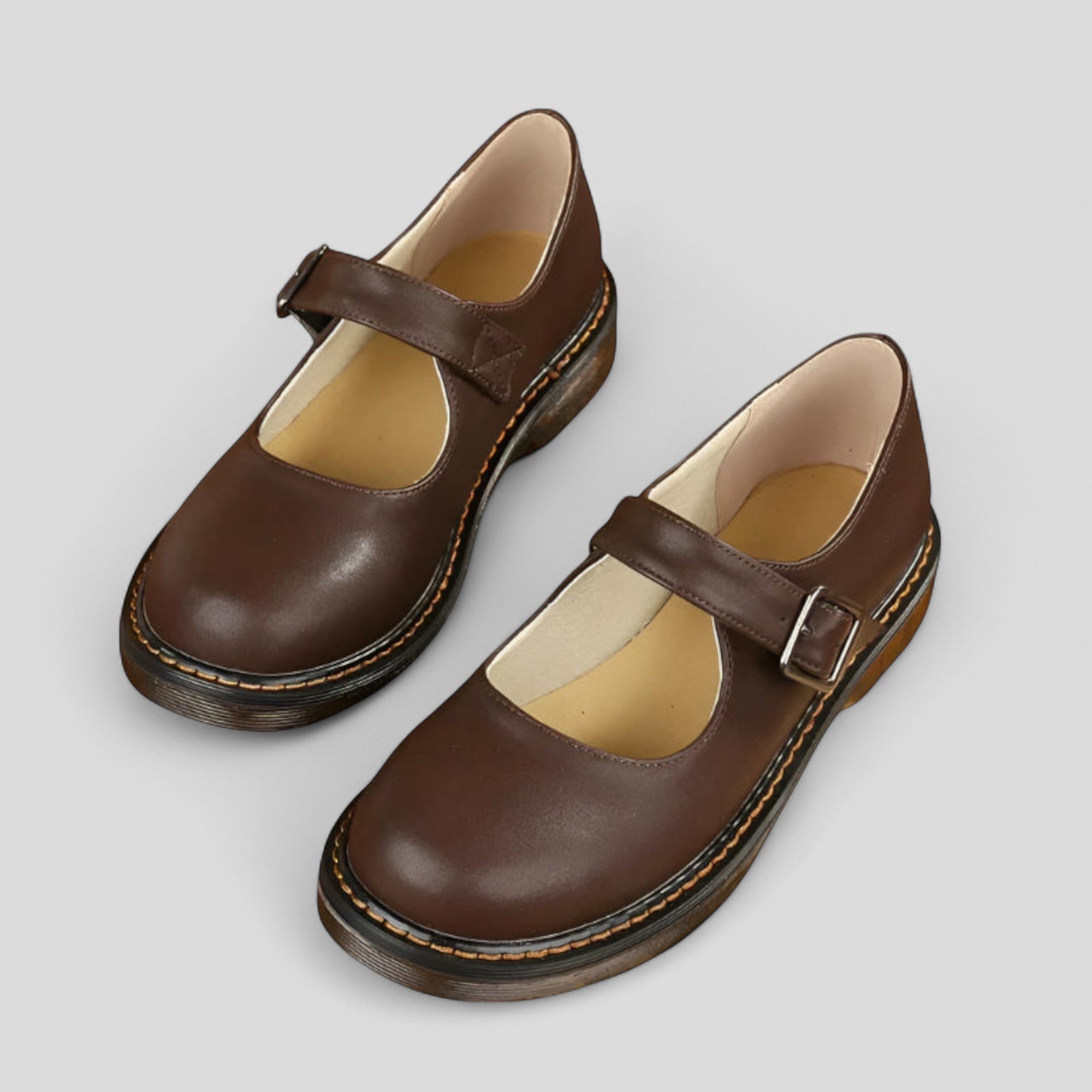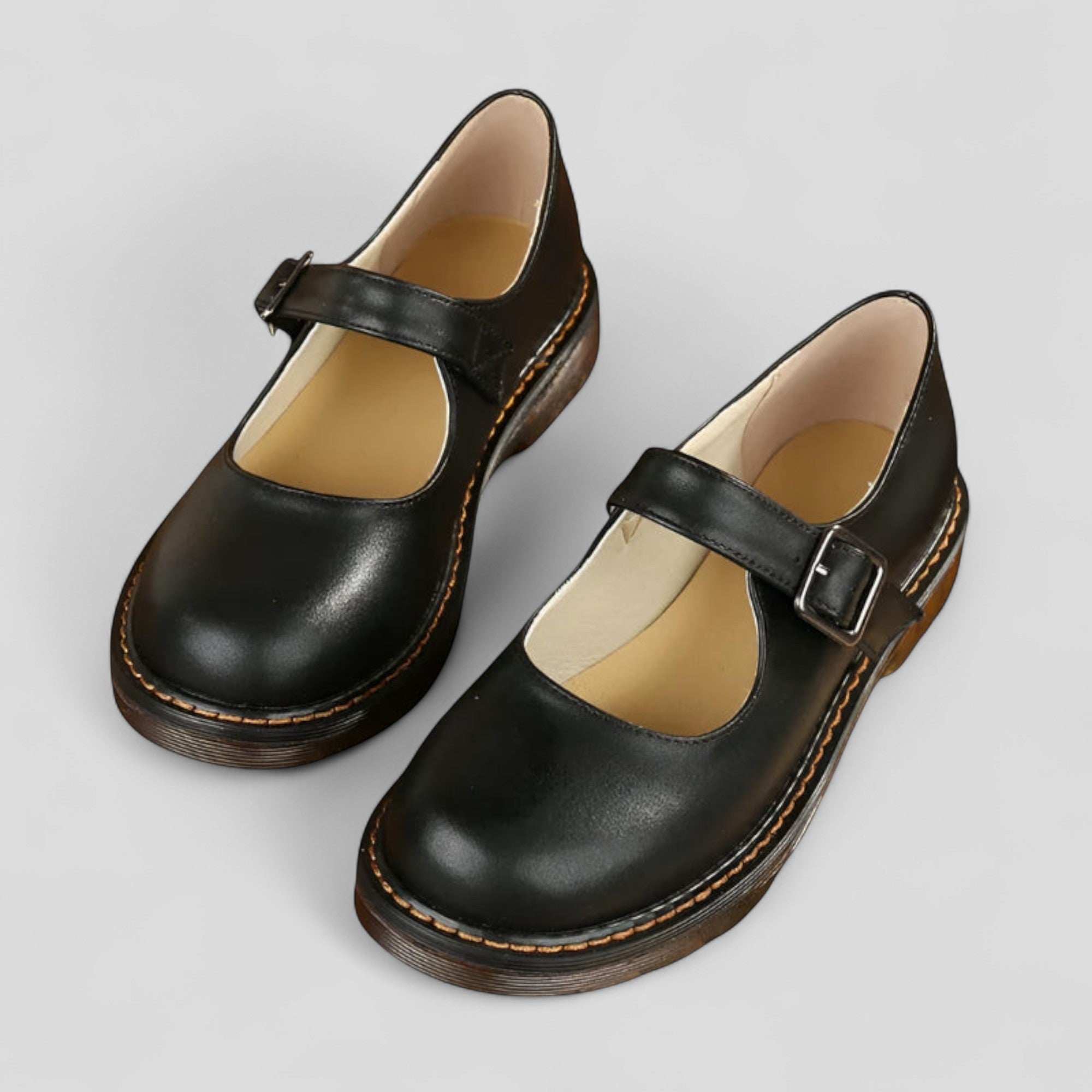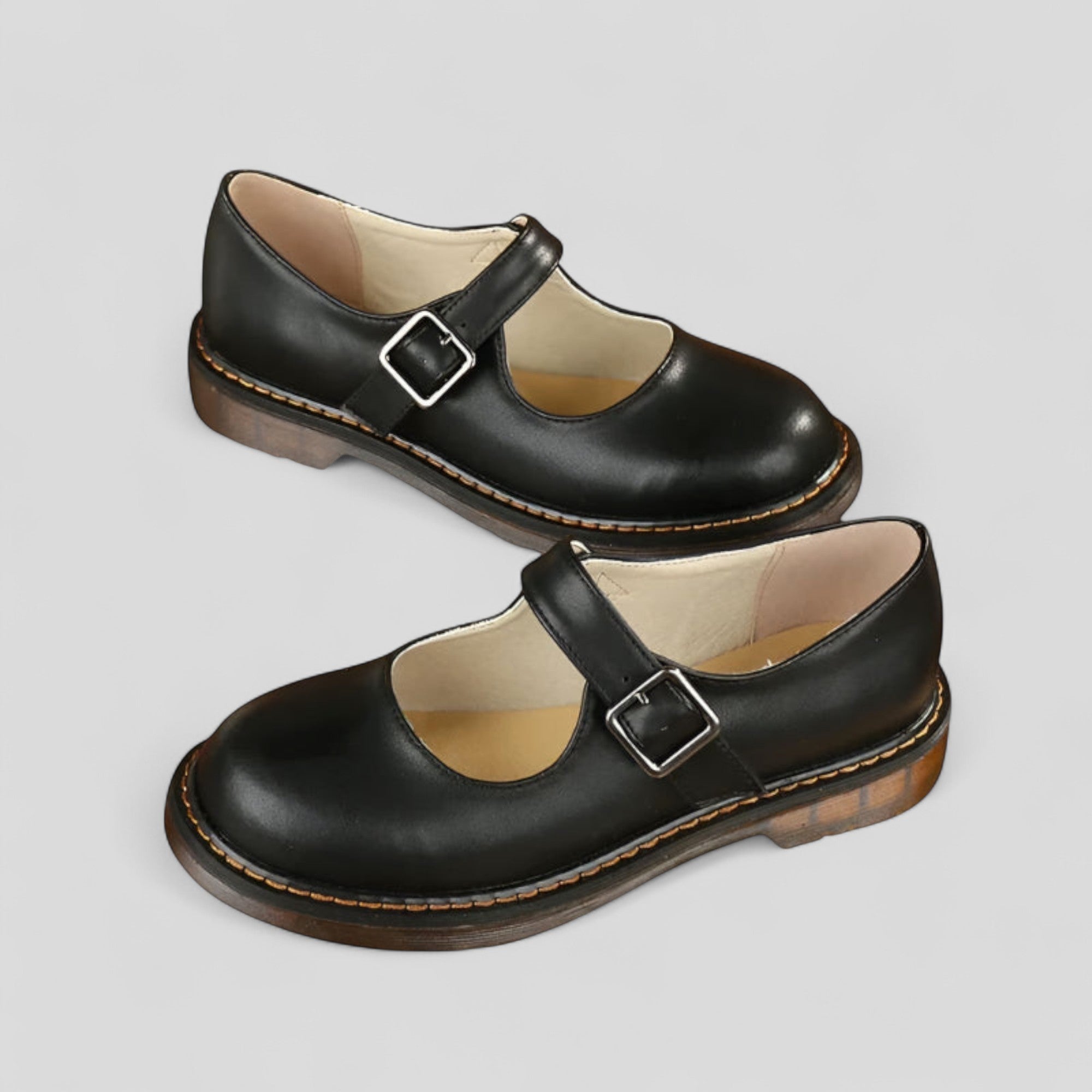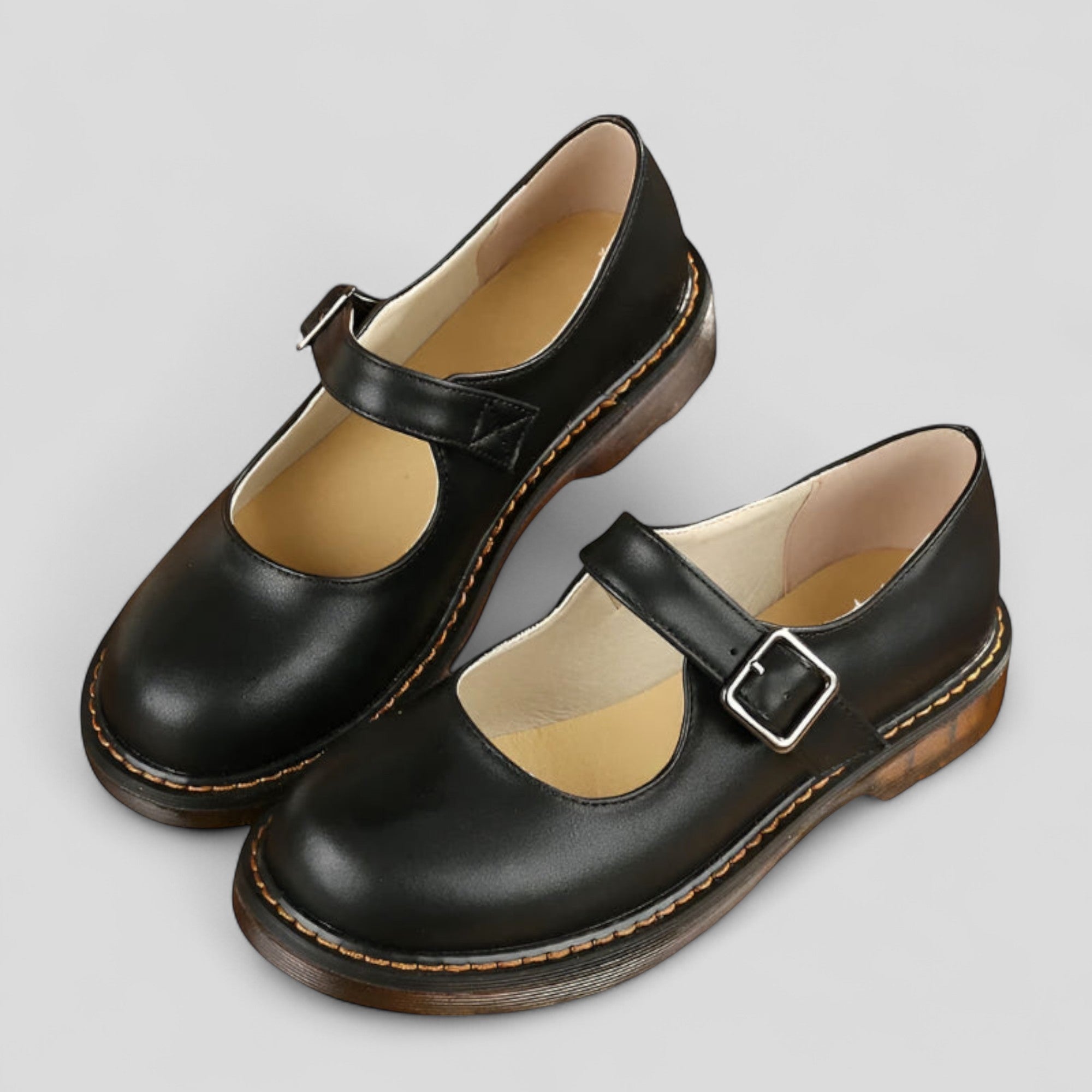 Mary Jane Atemporales con un diseño minimalista que combina comodidad y estilo. Estas elegantes zapatos cuentan con una punta redonda y una correa ajustable para un ajuste perfecto. La plantilla ligeramente acolchada y la suela robusta con costura visible aseguran comodidad durante todo el día, ideal para la oficina, el tiempo libre o el uso diario.